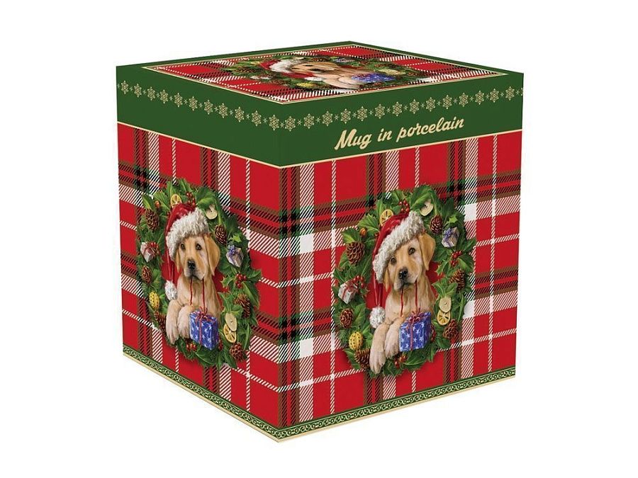 Оригинальная милая кружка с изображением щенка в рождественском колпаке. А внутренняя часть кружки украшена котенком. Цветовая гамма кружки классическая шотландская клетка. Кружка «Настоящий друг» - трогательный новогодний или рождественский подарок. Кружка изготовлена из фарфора и упакована в подарочную коробку.