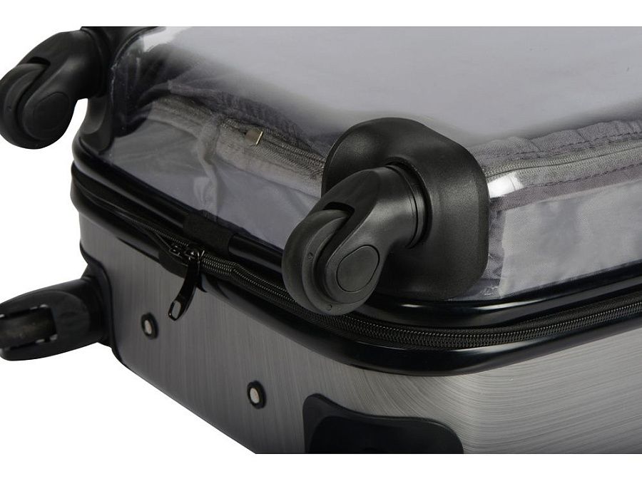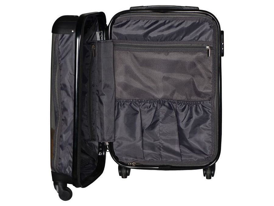 Удобен и незаменим для поездок на любые расстояния, можно брать в салон самолета благодаря компактному размеру, который был специально разработан в соответствии с требованиями большинства авиакомпаний. Одна боковая сторона из прозрачного пластика с возможность размещать бумажную вставку с вашим нанесение, 2 вместительных отделения - одно на молнии с чехлом, второе - с ремнями для фиксации одежды. На подкладке 2 внутренних кармана на молнии для хранения мелочей.