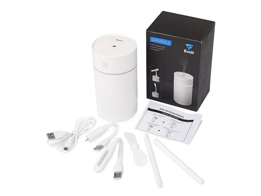 usb Увлажнитель, ватная прокладка- 2 шт., кабель micro-usb, инструкция, насадка с вентилятором, насадка с подсветкой |
