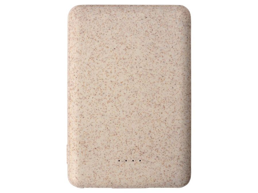 Портативное зарядное устройство "Wheatty" на 35% состоит из переработанной пшеничной соломы, что является положительным примером сокращения производства и потребления пластика в мире. Повербанк имеет миниатюрный размер и небольшой вес. Может заряжать два устройства одновременно. Поставляется в крафт упаковке из переработанной бумаги.
