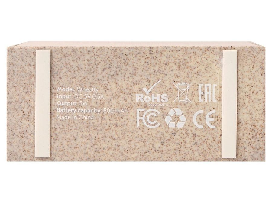 Беспроводная колонка "Wheatty" на 35% состоит из переработанной пшеничной соломы, что является положительным примером сокращения производства и потребления пластика в мире. Воспроизводит музыку в течение 3-х часов. Мощность 3 Вт. В колонке предусмотрены кнопки управления и линейный вход (AUX). Компактная колонка с быстрым подключением (Bluetooth 5.0). Поставляется в крафт упаковке из переработанной бумаги.