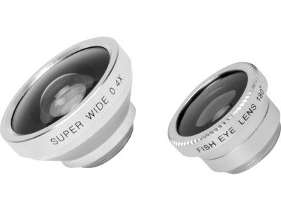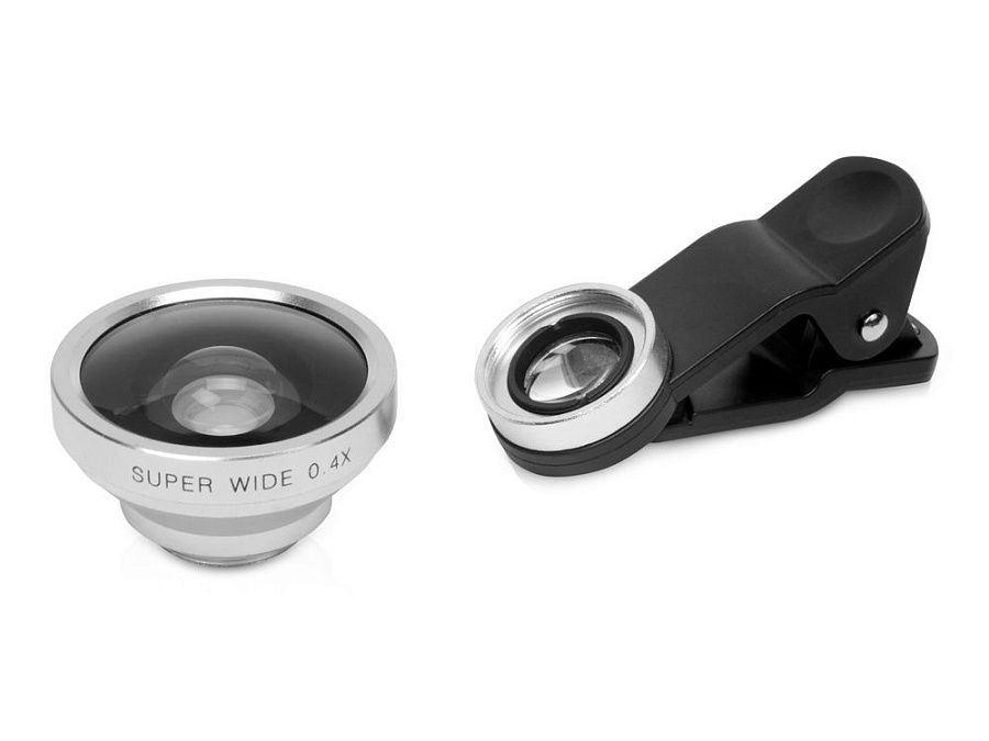 Универсальный набор из 3 линз (объективов) для смартфона. Подходит как для внешних, так и для камер «селфи». В наборе: широкоугольный объектив (0,4 х), объектив «рыбий глаз» (180°) разбирается на 2 части, одна из них - объектив для макросъёмки, зажим-прищепка для крепления объективов, инструкция, пластиковый бокс, защитные крышки для объективов, мягкий чехол.