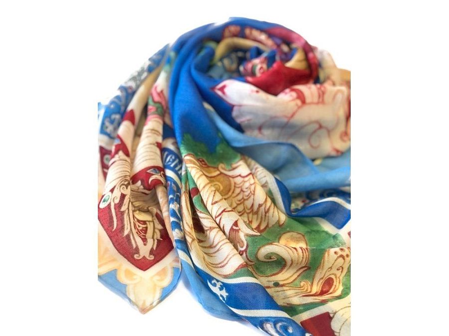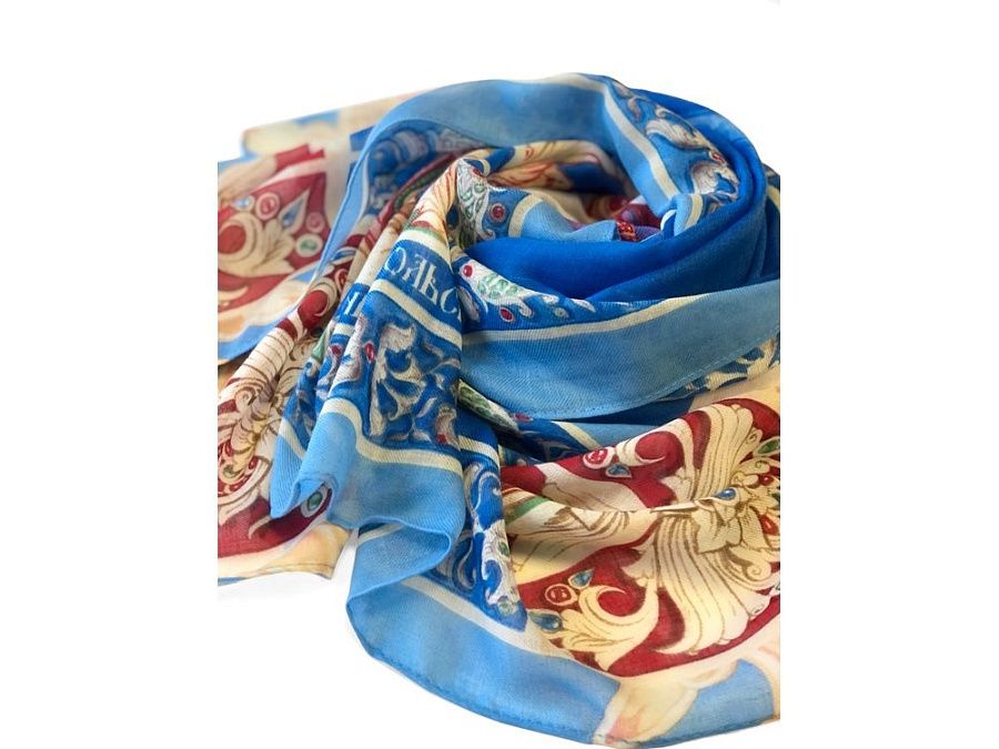 Прочитав сказку юного дарования, сам великий Александр Сергеевич Пушкин сказал: «Этот род сочинений я могу теперь оставить» - и Петр Ершов был принят в круг петербургских писателей.В этом году сказке из золотого фонда русской литературы, переведенной на все языки мира, исполняется 185 лет. Ее яркие краски мы перенесли на шелк и создали платок «Конек-Горбунок». Благодаря тонкой работе дизайнера, со страниц книги, как живые, сошли герои любимой с детства истории: Иван, прекрасная Царь-девица и волшебный Конек-Горбунок. А в роскошных орнаментах сплелись легендарное перо Жар-птицы, Красное Солнышко и Месяц…