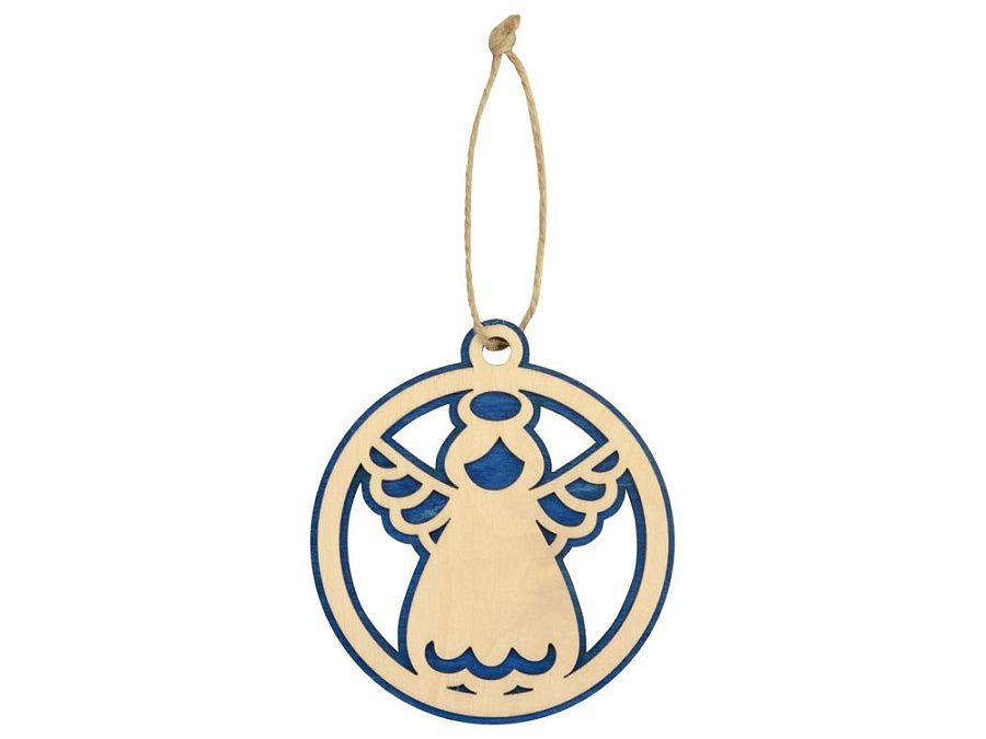 Елочная игрушка в виде главного символа праздника. новогоднего ангела – атмосферный и праздничный сувенир. Подвеска изготовлена из березовой фанеры и украшена тонировкой синего цвета, которая подчеркивает объемность игрушки и оттеняет текстуру неокрашенной части подвески. На одеждах ангела можно разместить ваши благопожелания или логотип.