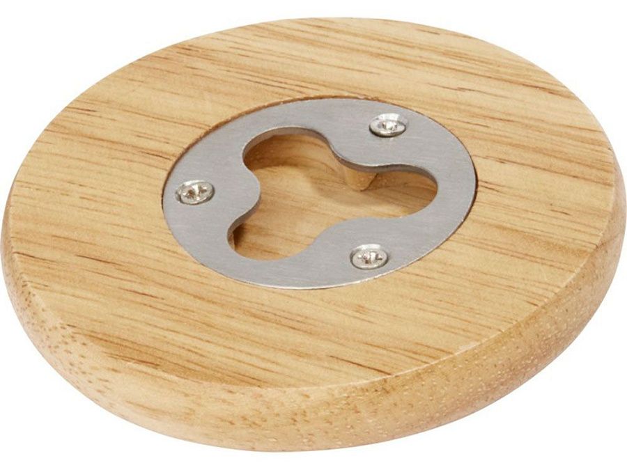 Деревянная подставка с открывалкой из нержавеющей стали. Дерево, нержавеющая сталь.