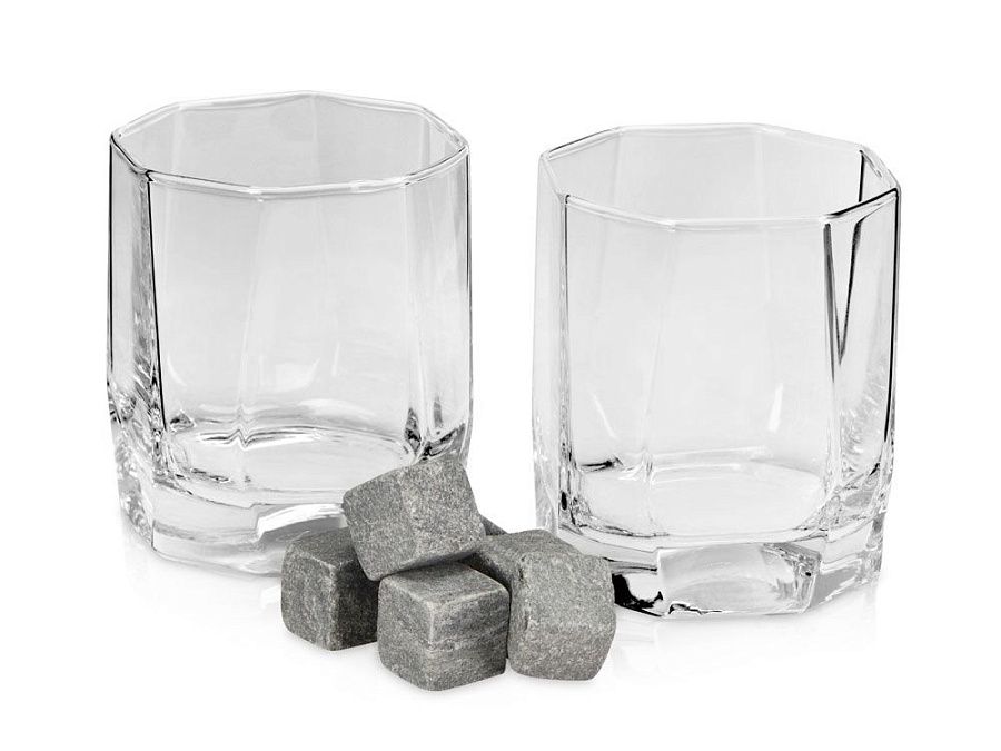 Набор для виски "Buddies" станет прекрасным дополнением к этому благородному напитку. Набор упакован в брендированную коробку, в которой вы найдете бокалы и камни в мешочке. Камни выполнены из талькохлорита, бокалы — из стекла.