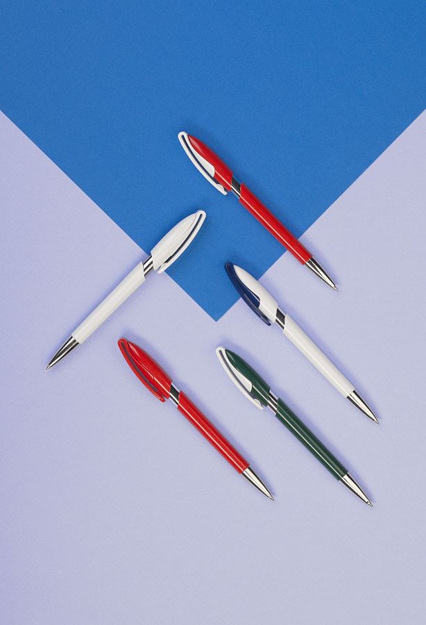 Надёжный нажимной механизм, яркий цвет и оригинальный дизайн клипа в данной модели ручки дополнены металлическим наконечником и блестящим глянцевым внутренним корпусом.