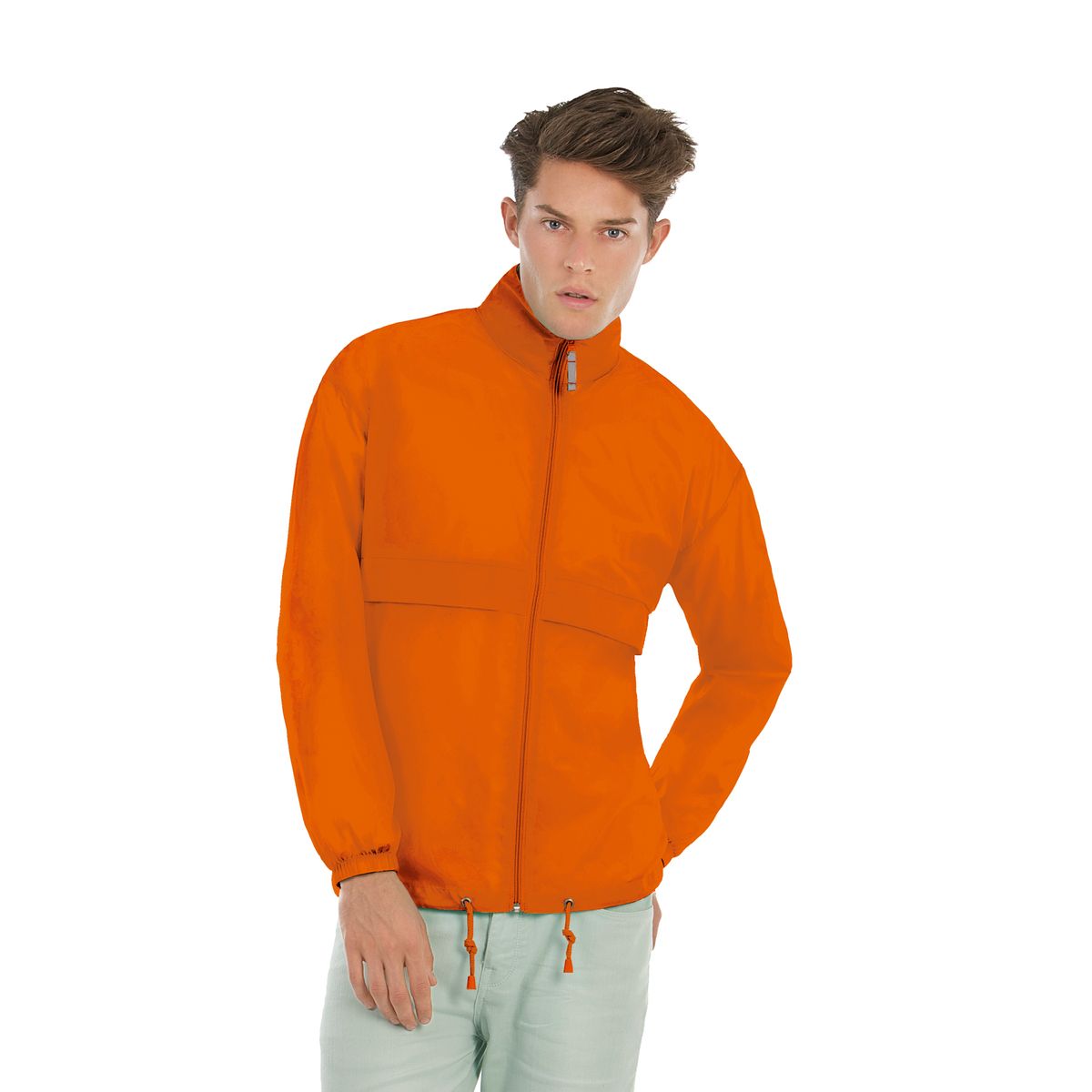 Ветровка с капюшоном (также капюшон складывается внутрь воротника - застежка на липучке); ветронепроницаемый, водоотталкивающий нейлон.