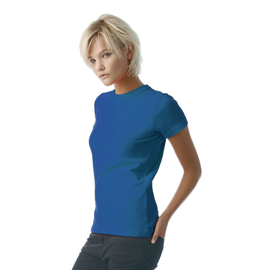 Футболка женская, приталенная, с боковыми швами, плотностью 185 г/кв.м.; воротник с резинкой 1х1.