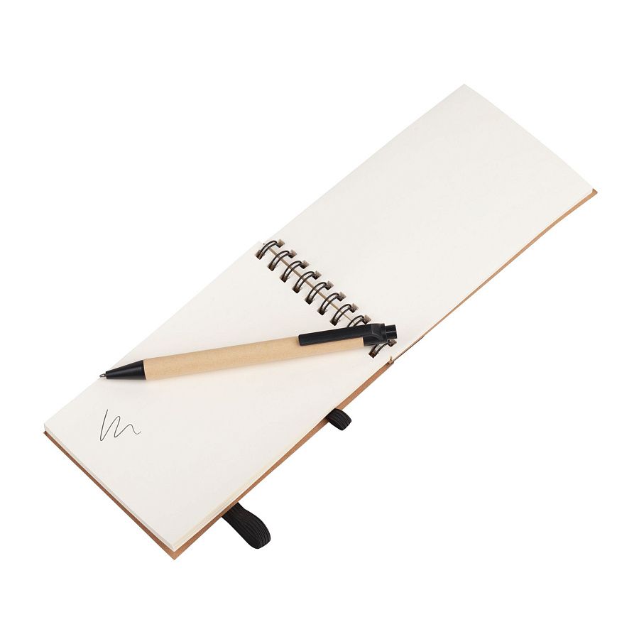 Блокнот - переработанный картон, ручка - переработанный пластик, паста черного цвета, 70 листов, без разлиновки