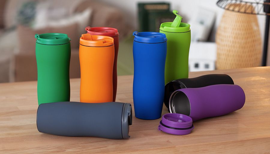 Термостакан X1 с цветной кнопкой, серый с оранжевым