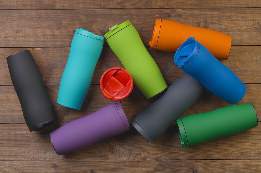 Термостакан X1 с цветной кнопкой, серый с оранжевым