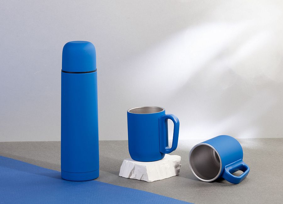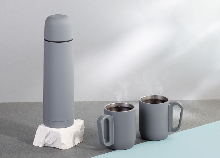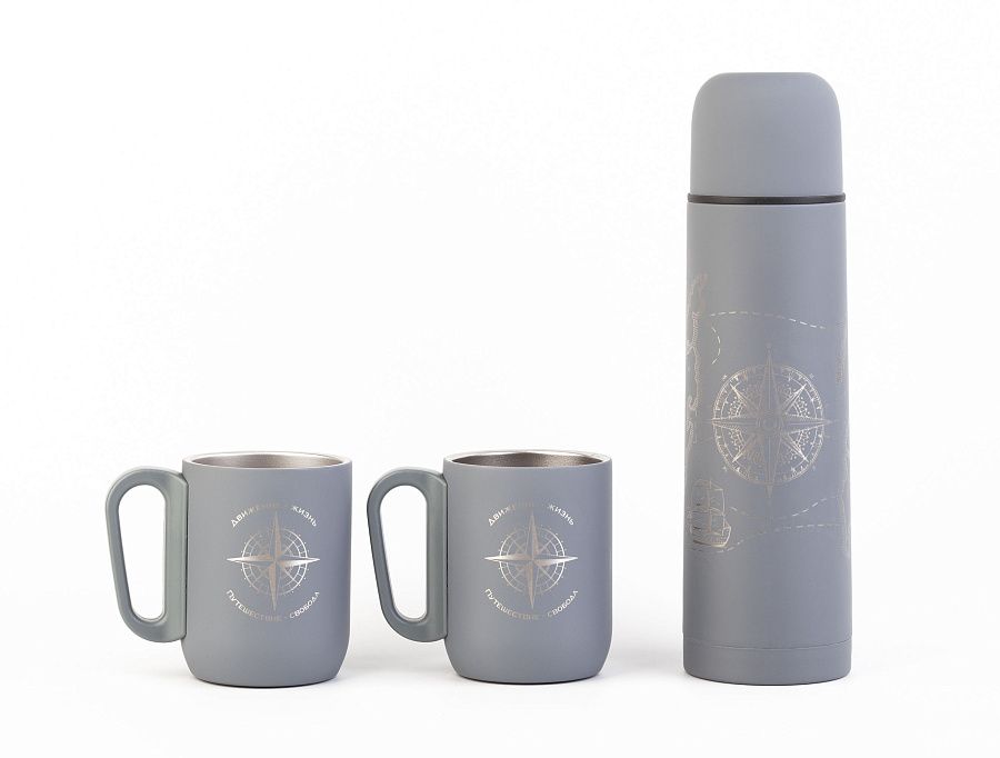 Набор «Гейзер» состоит из термоса, двух кружек и переносной сумки-чехла. Набор изготовлен из пищевой нержавеющей стали с прорезиненным напылением soft-touch, благодаря которому термос не скользит в руках. Сумка-чехол с регулируемым ремешком дополнительно сохранит температуру, защитит набор от внешних неблагоприятных факторов и сделает вид более презентабельным. Набор «Гейзер» обладает широкими возможностями персонализации на сумке-чехле, термосе и кружках. Гармоничный дизайн набора «Гейзер» и его функциональность приятно удивят получателя.