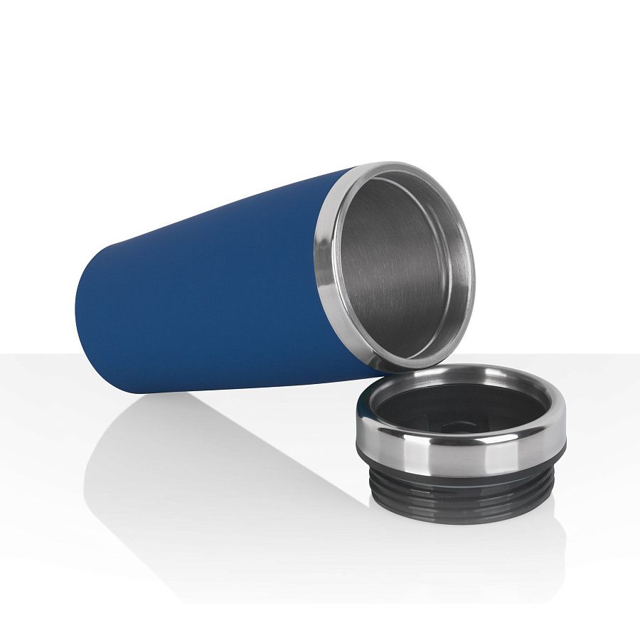 Внешняя стенка термостакана изготовлена из нержавеющей стали с уникальным прорезиненным напылением soft-touch, а внутренняя стенка выполнена из высококачественной пищевой, нержавеющей стали. Корпус изделия персонализируется по окружности встык. У термостакана отвинчивающаяся крышка.