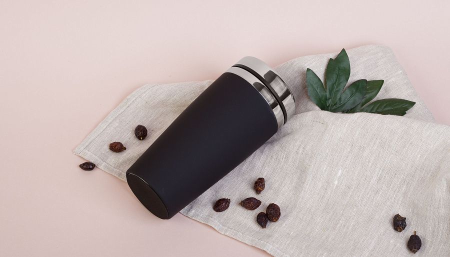 Термокружка с двойной металлической стенкой Rolly, софт-тач, черный, артикул 5027