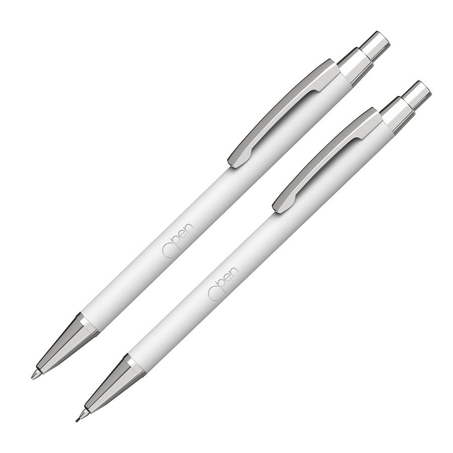Металлическая ручка и карандаш с корпусом в покрытии soft touch в металлическом серебристом футляре.