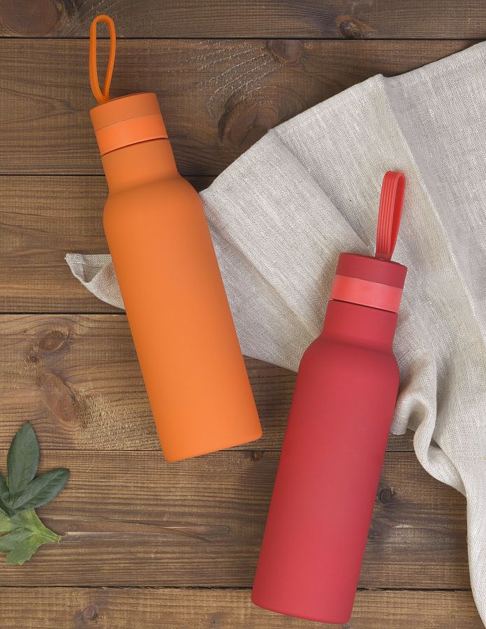 Завинчивающаяся колба защищает от протекания, удобная силиконовая ручка позволяет комфортно носить бутылку.