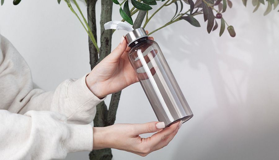 Бутылка для воды «H2O» — это удобный и полезный презент для любого человека. Она позволяет всегда иметь при себе запас (500 мл) чистой питьевой воды. Бутылка изготовлена из экологически чистого пластика и оснащена завинчивающейся металлической крышкой. Текстильная ручка на крышке дает возможность максимально удобно переносить емкость в руках. Благодаря стандартному размеру, бутылка хорошо помещается в сумку и рюкзак.