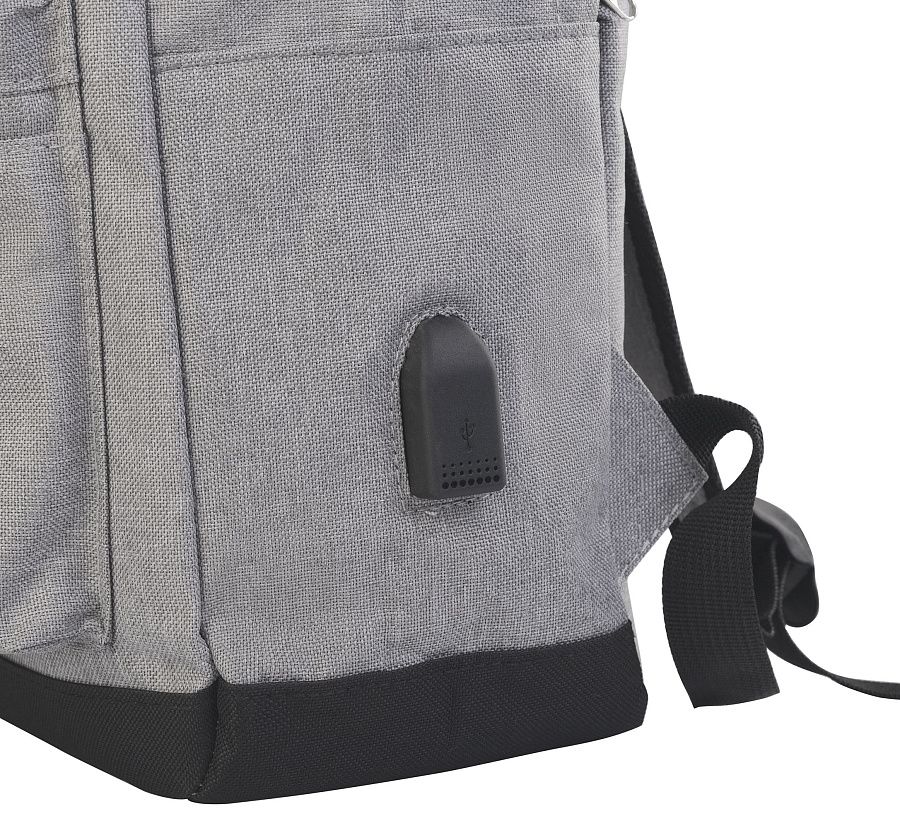 Достаточный объём и несколько отделений рюкзака позволят вместить всё самое необходимое. Основной материал - полиэстер плотностью 600 D хорошо держит форму и устойчив к сминанию. Прорезиненная подложка надежно защищает содержимое от влаги. Есть внешний карман на молнии, карман-сетка с боковой стороны и выход для проводов с противоположной стороны. Основное отделение имеет скрытую молнию и внутри – карман с RFID-защитой. Внутренний подклад – серого цвета.