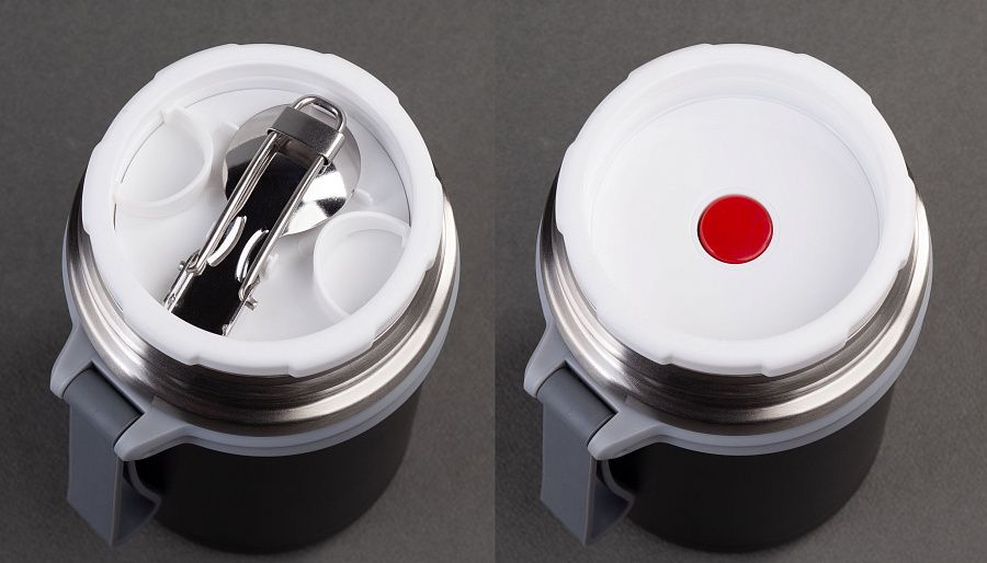 Конструкция термоса оптимальна для повседневного использования. Любителям домашней еды определенно понравится удобная ручка для переноса, складная ложка, которая идет в комплекте, и - практичное износостойкое покрытие. Специальная порошковая краска не только защищает термос от механических повреждений, но и проста в уходе. Зернистая фактура поверхности отлично маскирует отпечатки пальцев.