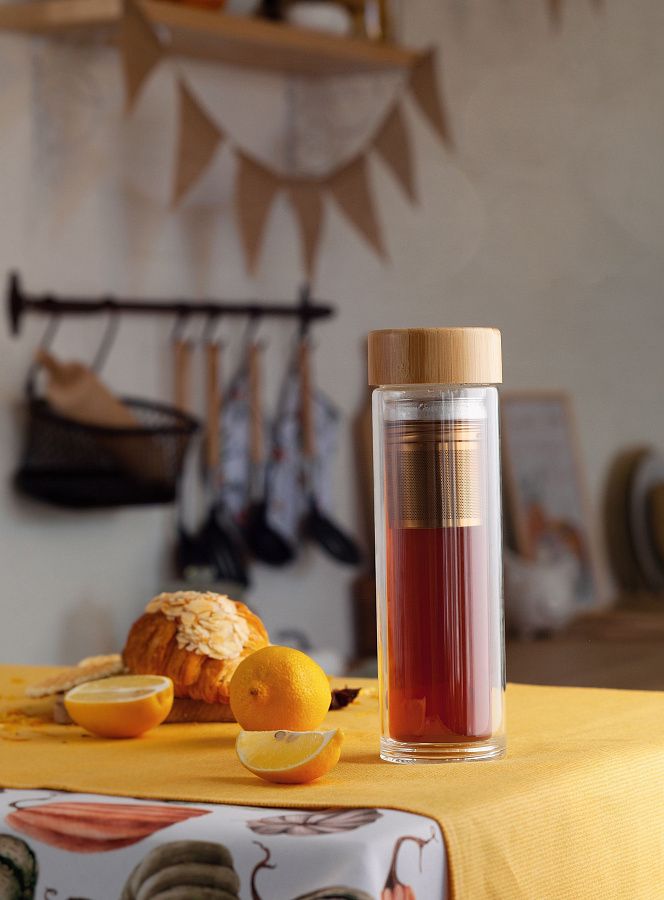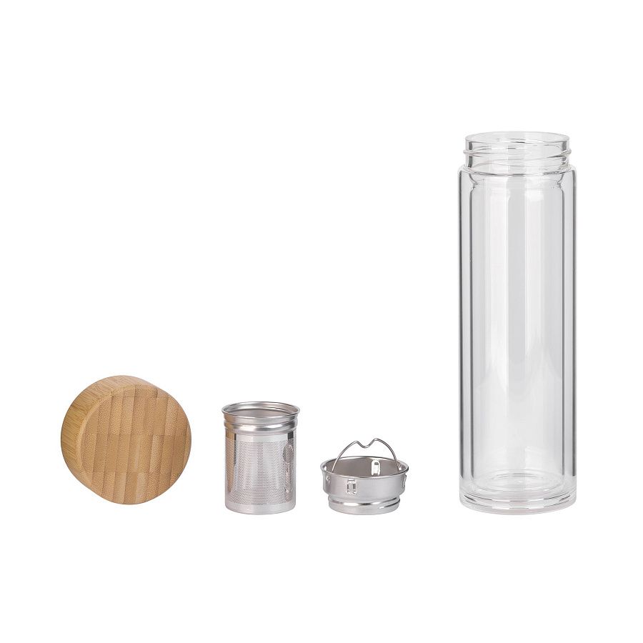 Заварочный термос с ситечком для чая – позволит носить любимый напиток всегда с собой. Двойная стенка из боросиликатного стекла обладает низкой теплопроводностью, сохраняет температуру и вкус напитка. Съемный инфузер выполнен из 304 стали, устанавливается легко и прочно, что исключает попадание частичек чая или кофе в напиток.