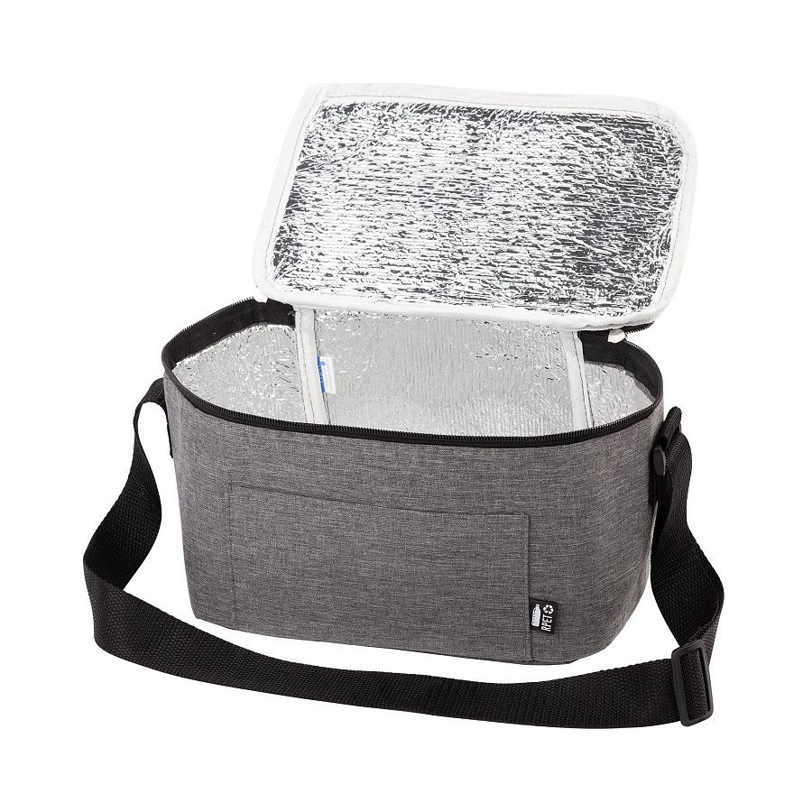 Сумка-холодильник изготовлена из прочной ткани, полученной из переработанного пластика (RPET) с меланжевым эффектом.