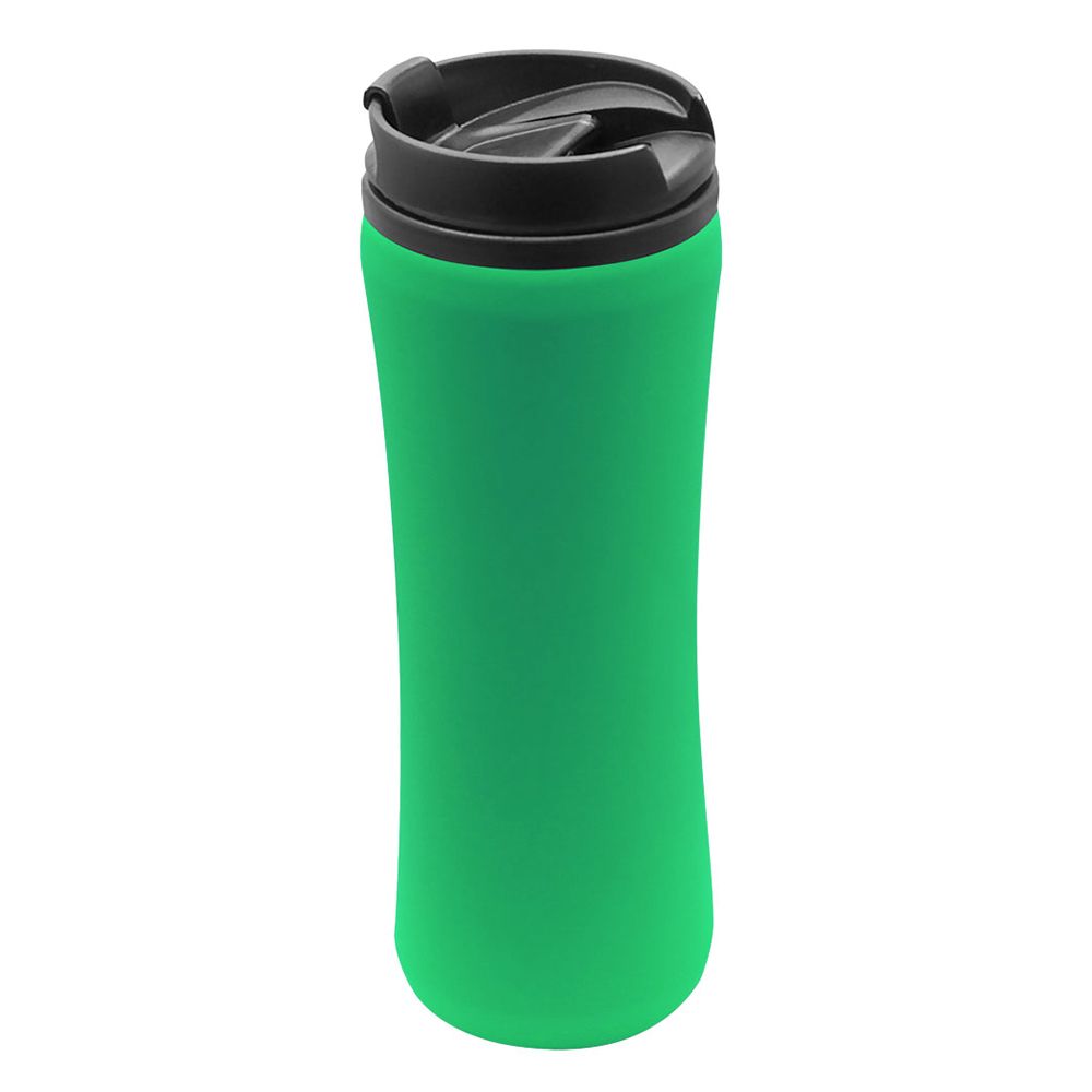 Термокружка изготовлена из нержавеющей стали с покрытием софт тач. Внутренняя колба сделана из пластика. Вакуумная конструкция. Откидной клапан позволяет пить, не снимая крышку, что помогает дольше сохранить начальную температуру напитка. Объем термокружки – 500 мл.