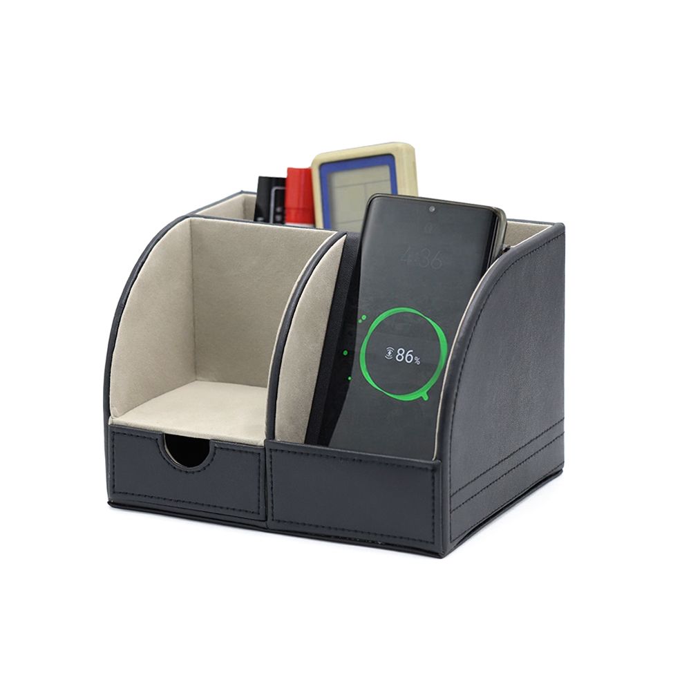 Органайзер “Форма” имеет встроенную беспроводную зарядку, что выгодно отличает его от аналогов. Данная модель имеет качественно покрытие из кожзама и много отделений для офисных мелочей. Вход: 5V-2A / 9V-1.67A. Выход: 7.5W/10W. В комплекте кабель USB и инструкция.