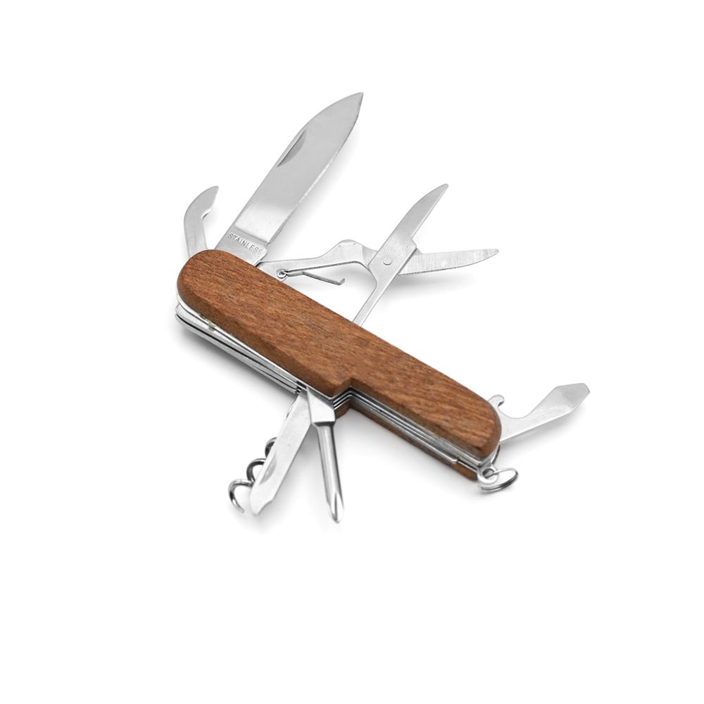 - Функции: Штопор, Нож, Пилочка, Крестовая отвертка, Ножницы, 2 открывашки