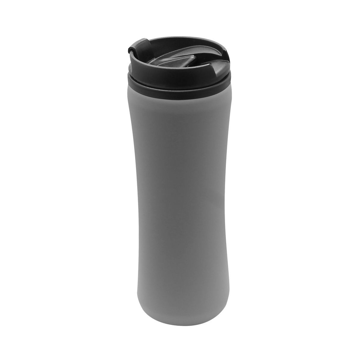 Термокружка изготовлена из нержавеющей стали с покрытием софт тач. Внутренняя колба сделана из пластика. Вакуумная конструкция. Откидной клапан позволяет пить, не снимая крышку, что помогает дольше сохранить начальную температуру напитка. Объем термокружки – 500 мл.