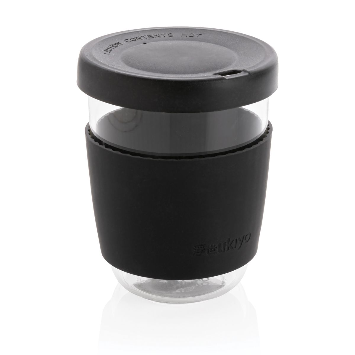 Наслаждайтесь любимыми напитками с помощью этого стильного стакана Ukiyo из боросиликатного стекла с силиконовой крышкой и держателем. Минималистичный дизайн и удобство использования. Небольшое отверстие в крышке сделано специально для отведения пара. Не содержит BPA. Объем 360 мл.