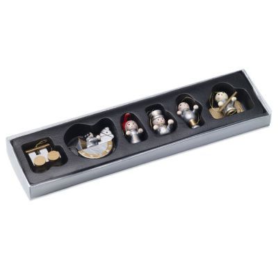 Набор из 6 новогодних украшений в коробке с прозрачной крышкой.