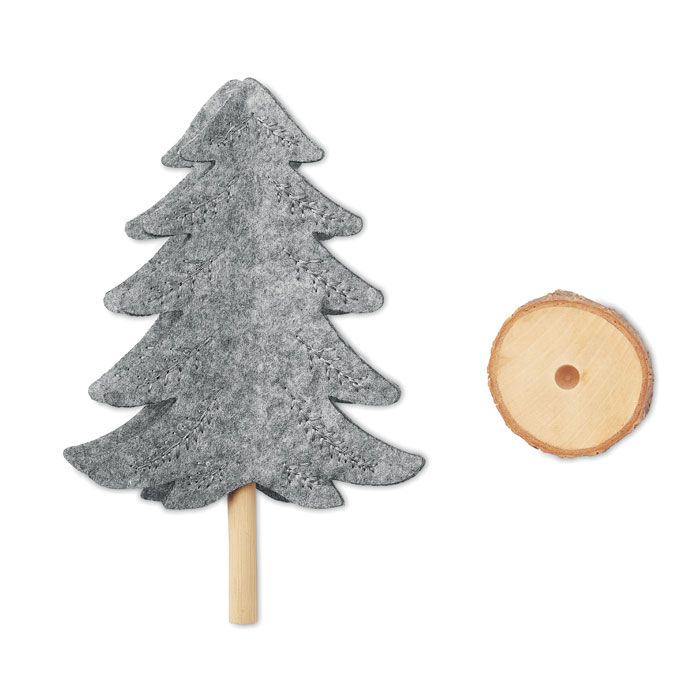 Елка новогодняя из фетра (RPET). Праздничное украшение вашего стола на деревянной подставке