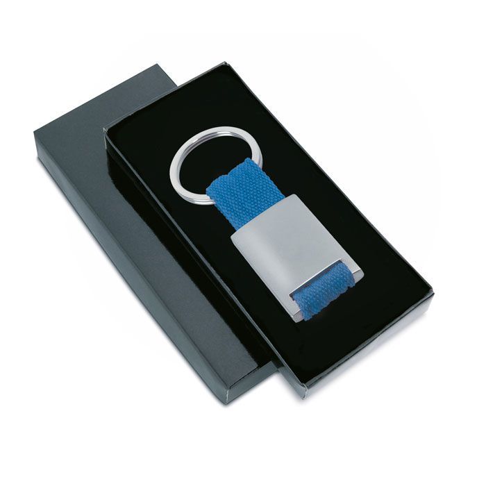 Металлический прямоугольный брелок на ремешке из цветной ткани