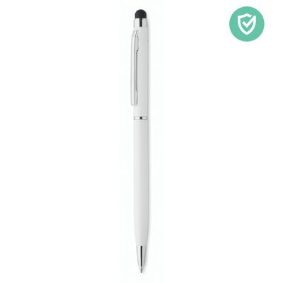 Шариковая ручка-стилус алюминиевая поворотная с антибактериальным корпусом и блестящим хромированным клипом. ISO 22196. Синие чернила.