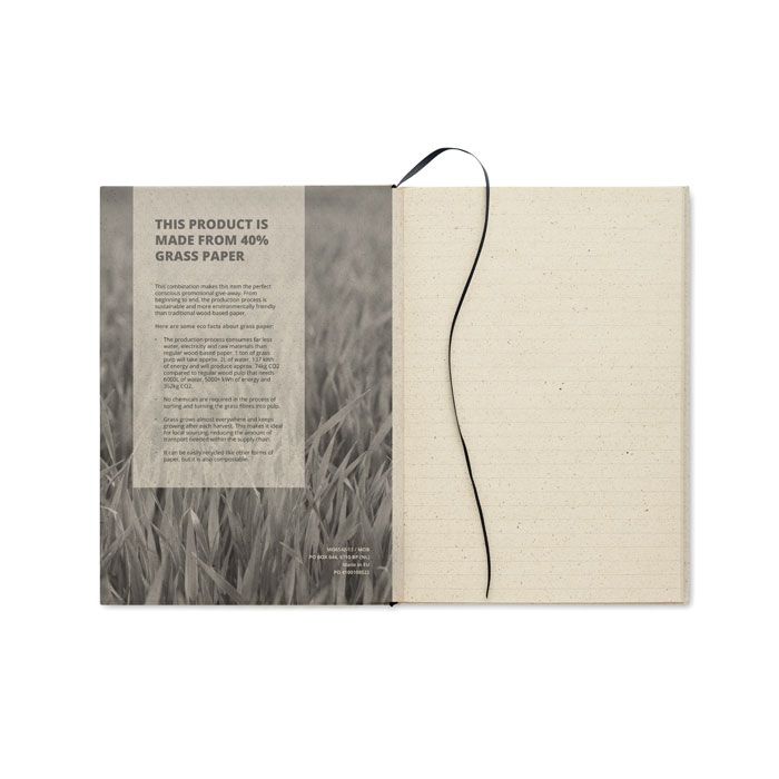 Блокнот формата A5 с 80 листами линованной бумаги содержащей семена травы и картонной обложкой. Идеально подходит для всех ваших записей во время офисных встреч или в школе. Бумага, содержащая семена травы, идеальный рекламный эко сувенир. От начала и до конца производственный процесс этой бумаги является более экологичным, чем производство традиционной бумаги из древесины. Сделано в ЕС.
