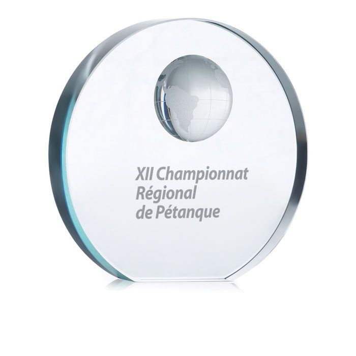 Элегантная наградная стелла из стекла с глобусом. Представлена в классической подарочной коробке.