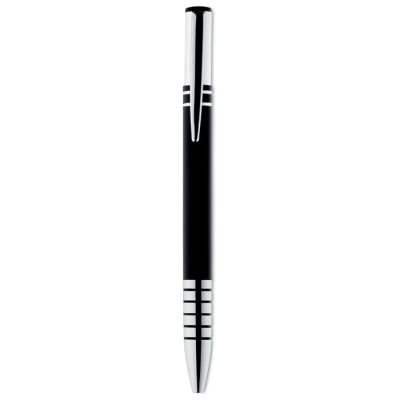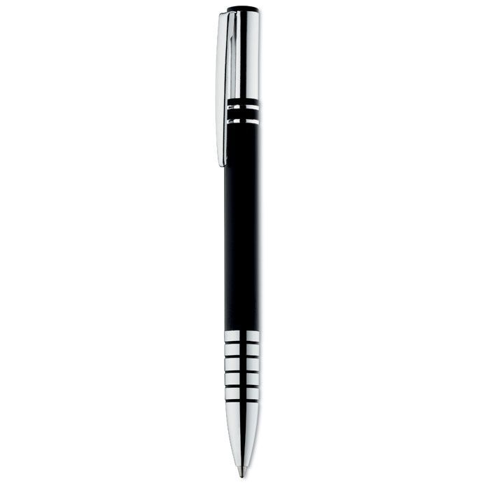 Алюминиевая ручка с блестящей отделкой. Синие чернила.