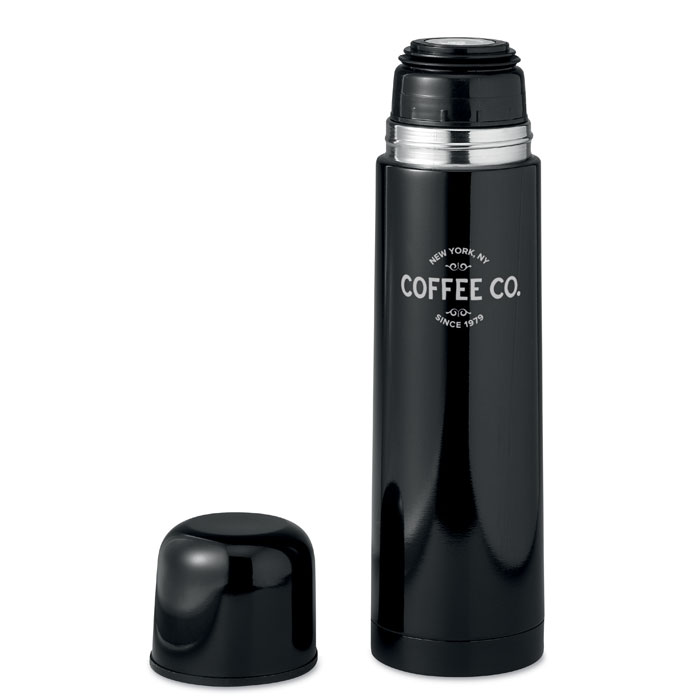 Термос из нержавеющей стали. Емкость 500 мл. Металлическая колба, прока с нажимным механизмом , крышка-чашка с пластиковой колбой. Можно мыть в посудомоечной машине. При гравировке вскрывается серебристый металл.