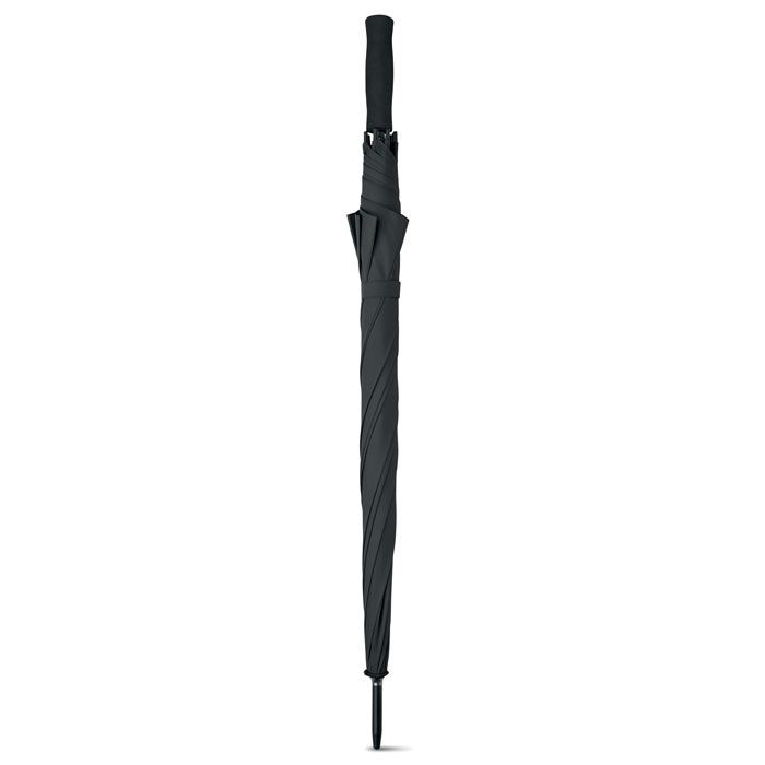Зонт автоматический из полиэстера с пластиковыми наконечниками на спицах.