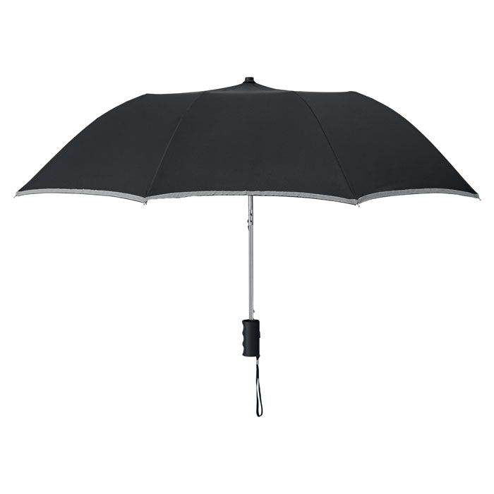 Автоматический складывающий вдвое зонт в чехле. Отделан светоотражающими элементами.