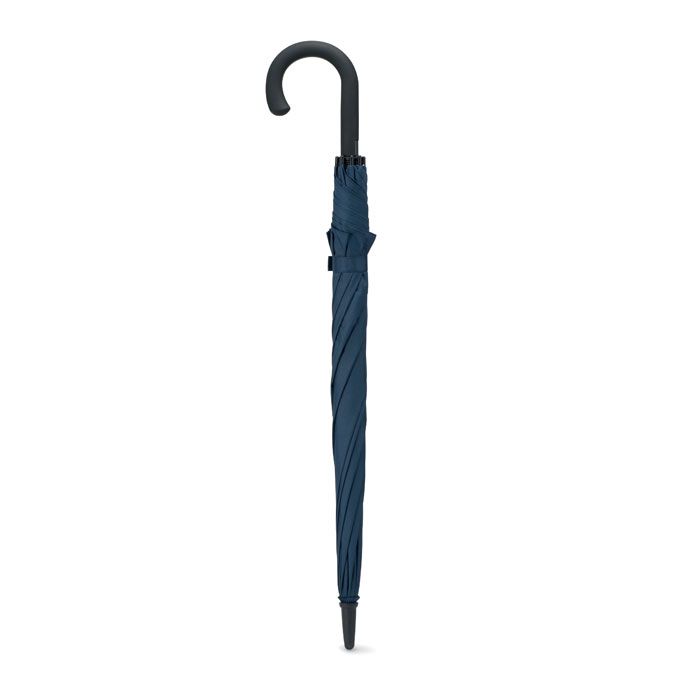 Зонт полуавтомат устойчивый к ветру с металлическим стержнем и черной прорезиненной пластиковой ручкой. Длина в сложенном виде 23 см.