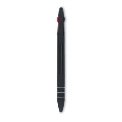 Пластиковая трехцветная ручка-стилус. Цвета чернил: красный, синий, черный
