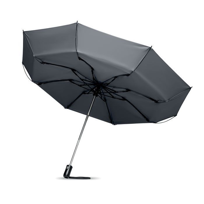 "Зонт в 3 сложения, размером 23"", реверсивный из материала эпонж плотностью 190T. Шток из хромированной стали, спицы из стекловолокна, ручка из пластика. Чехол в комплекте."