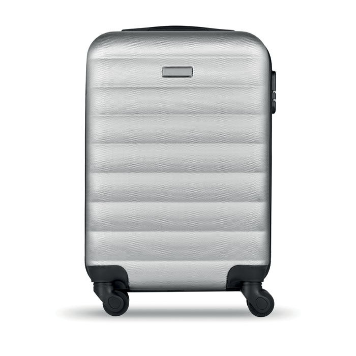 Чемодан из прочного пластика, с запирающим шифром. Внутри 2 одинаковых отделения: одно застегивается на ремешок, второе-на молнию. Чемодан вращается на 360 градусов и подходит для ручной клади.
