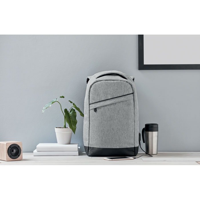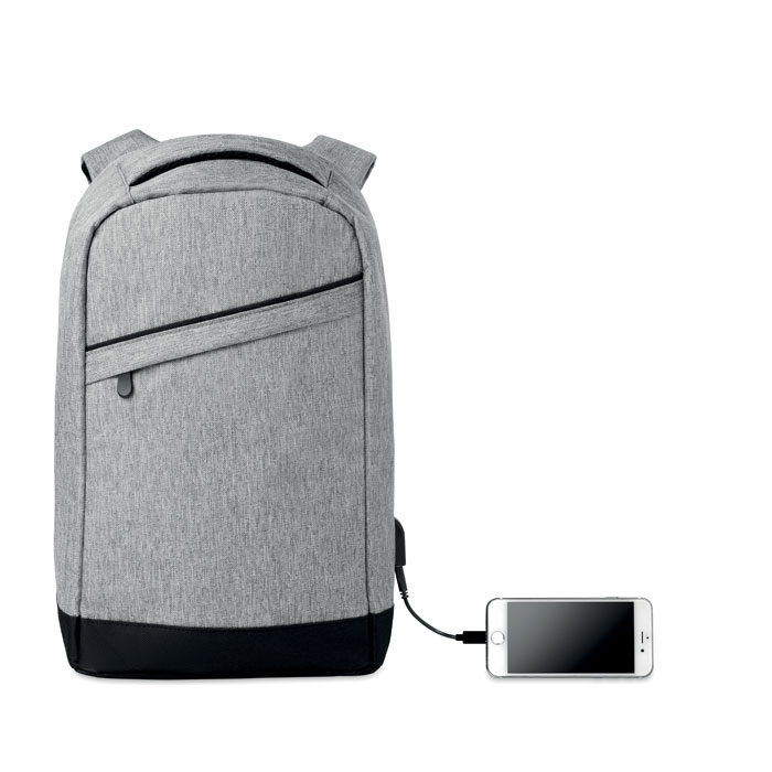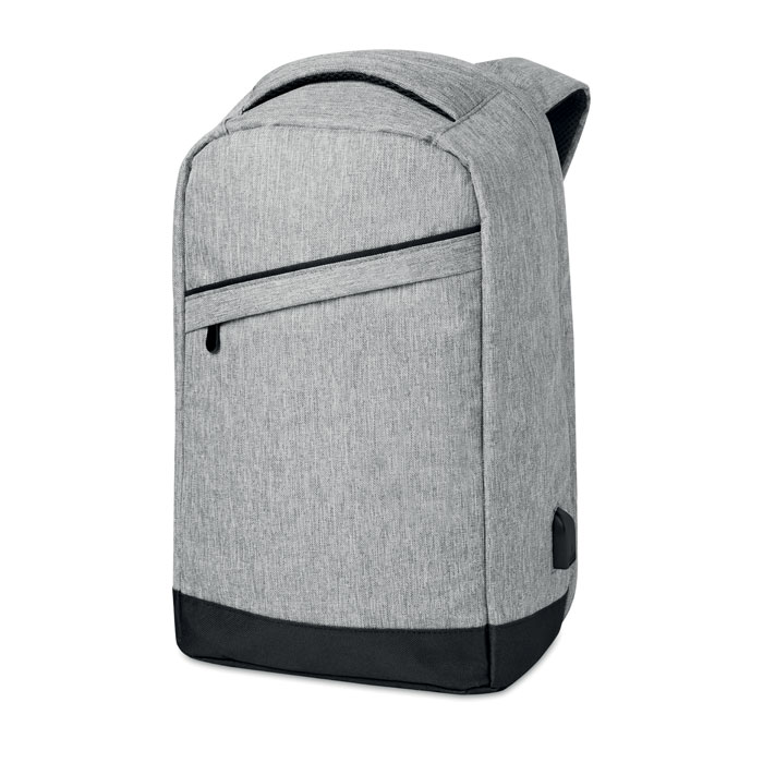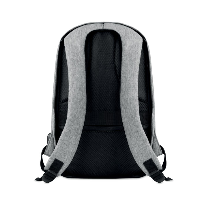 Рюкзак из полиэстера 600D двухцветный с мягким плечевым ремнем и основным внутренним отделением. Включает в себя один внутренний отсек для ноутбука с диагональю 13 дюймов и кабель для зарядки USB. Основной отсек на молнии на задней стороне для лучшей защиты.