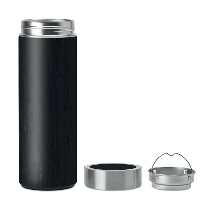 Термос заварочный двустенный, объем 400 мл. Колба из нержавеющей стали. Дополнительно - металлическое чайное сито с возможностью фиксации внутри колбы. Внешняя отделка корпуса и крышки – бамбуковый шпон. Поскольку бамбук является натуральным материалом, оттенки цвета и фактура каждого изделия могут варьироваться. Не предназначен для мытья в посудомоечной машине. При гравировке бамбуковой части изделия может вскрываться неоднородный цвет..