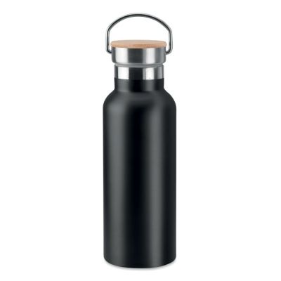 Термос-бутылка вакуумная двустенная из нержавеющей стали. Объем 500 мл. Винтовая крышка со вставкой из бамбука. При гравировке металлической части корпуса вскрывается темно-серебристый матовый цвет.