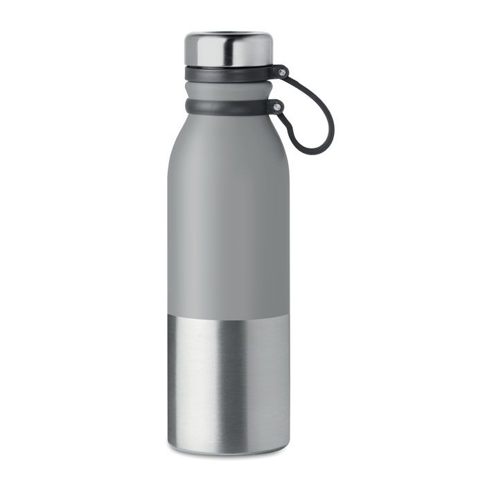 Термос двустенчатый ( термобутылка) из нержавеющей стали. Корпус частично покрыт прорезиненной краской. Вакуумная винтовая крышка. Емкость: 600 мл. При гравировке вскрывается темно-серебристый матовый цвет.
