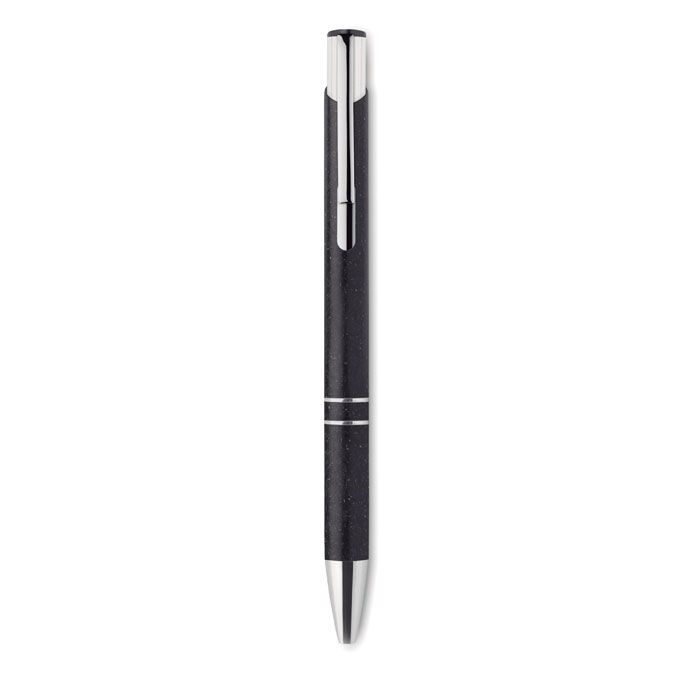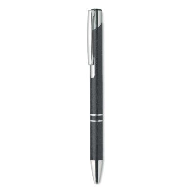 Шариковая ручка, состоящая на 50% из соломы и на 50% из пластика с серебряными вставками. Синие чернила.